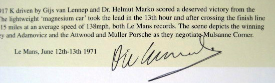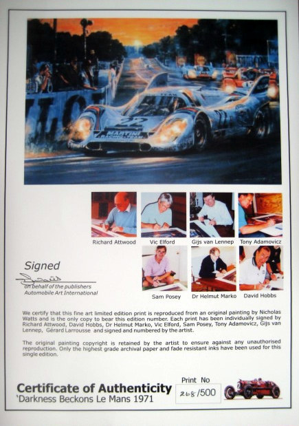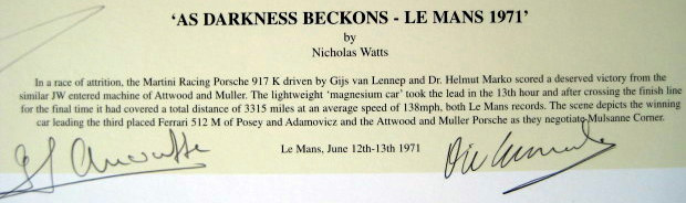 Edition signed by: Dr Helmut Marko, Gijs van Lennep, Sam Posey, David Hobbs, Tony Adamovicz, Richard Attwood, Vic Elford